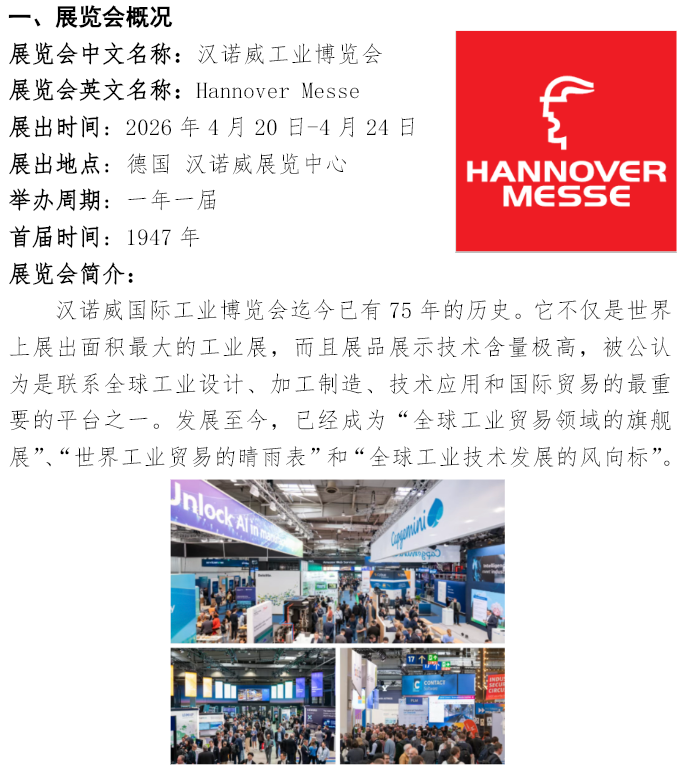 关于邀请参加2026年德国“汉诺威工业博览会”的通知